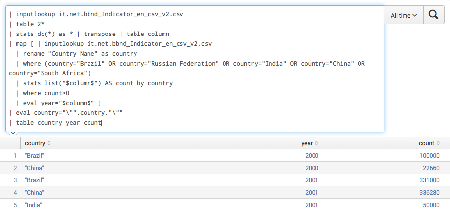 The second example leverages data from the World Bank data portal related to Internet subscribers. For this case, I’ve decided to apply a few constraints so that it becomes a bit simpler to render the results: