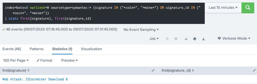 index=botsv3 earliest=0 sourcetype=symantec:* signature="Web Attack: JSCoinminer Download 8"